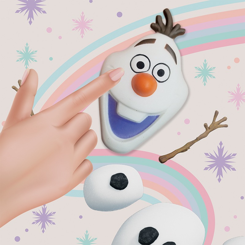 - Material: PVC brillante + aplique squishy con forma de Olaf en el frente