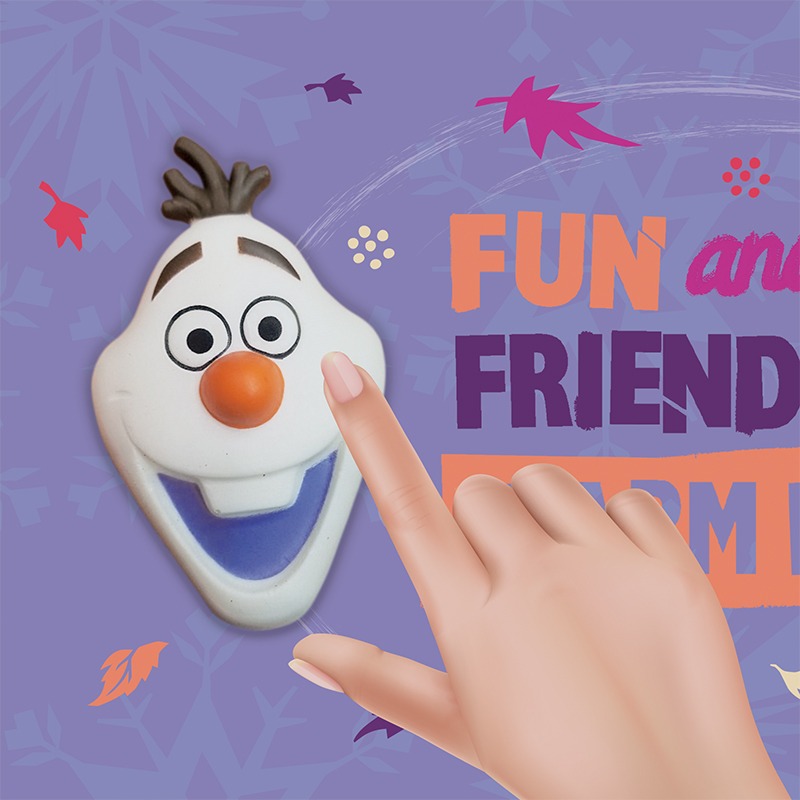- Material: PVC brillante + aplique squishy con forma de Olaf en el frente