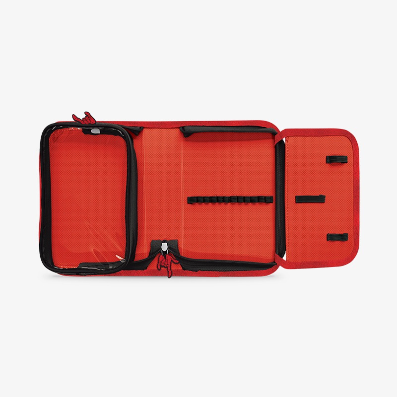 - Interior: 1 amplio compartimento transparente con cierre para colocar elementos sueltos, 24 elásticos para acomodar lápices y 3 elásticos más anchos para otros útiles