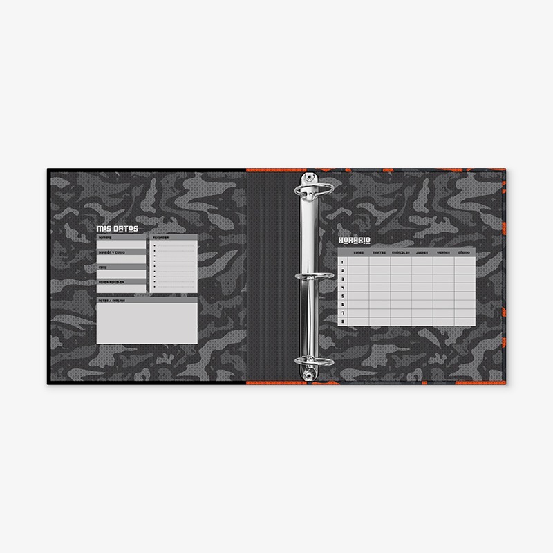 - Exterior impreso a todo color con laminado mate, sectorizado brillante y relieve en el frente