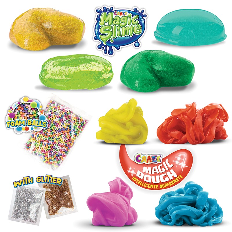 MAGIC SLIME y MAGIC DOUGH no contienen BPA ni gluten, están creadas con una fórmula rigurosa y alemana y están probadas por TÜV Rheinland. Producto original fabricado por Craze.