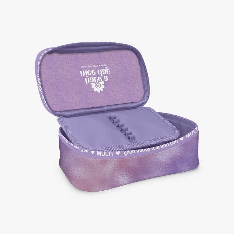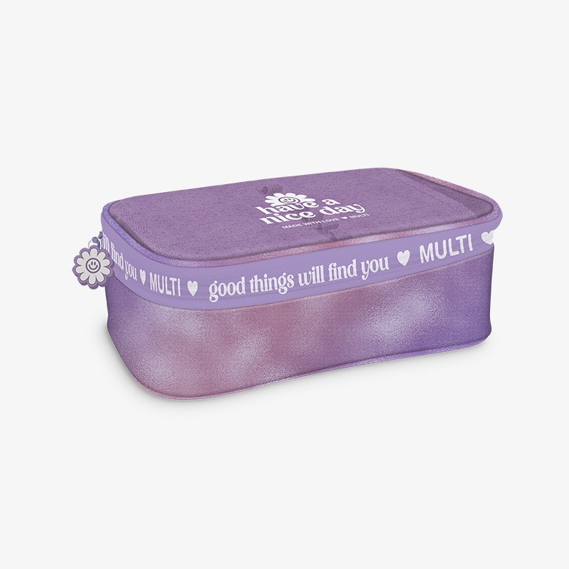 • Material: PVC translúcido con glitter y PU iridiscente en los laterales