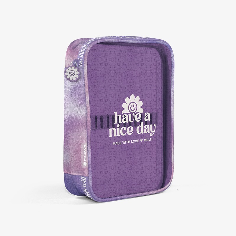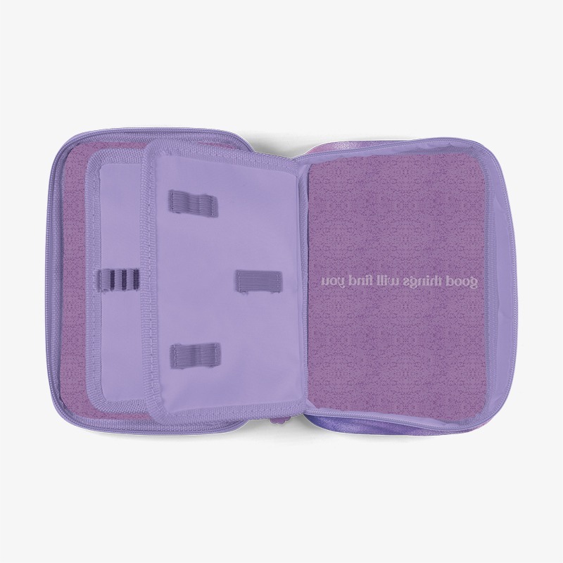 - Material: PVC translúcido con glitter y PU iridiscente en los laterales