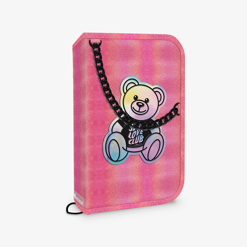 - Interior: 1 amplio compartimento transparente con cierre y diseño impreso para colocar elementos sueltos, 24 elásticos para acomodar lápices y 3 elásticos más anchos para otros útiles